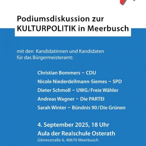 Einladung zur Podiumsdiskussion mit den Kandidatinnen und Kandidaten für das Bürgermeisteramt. Moderation: Dr. Lothar Beseler
